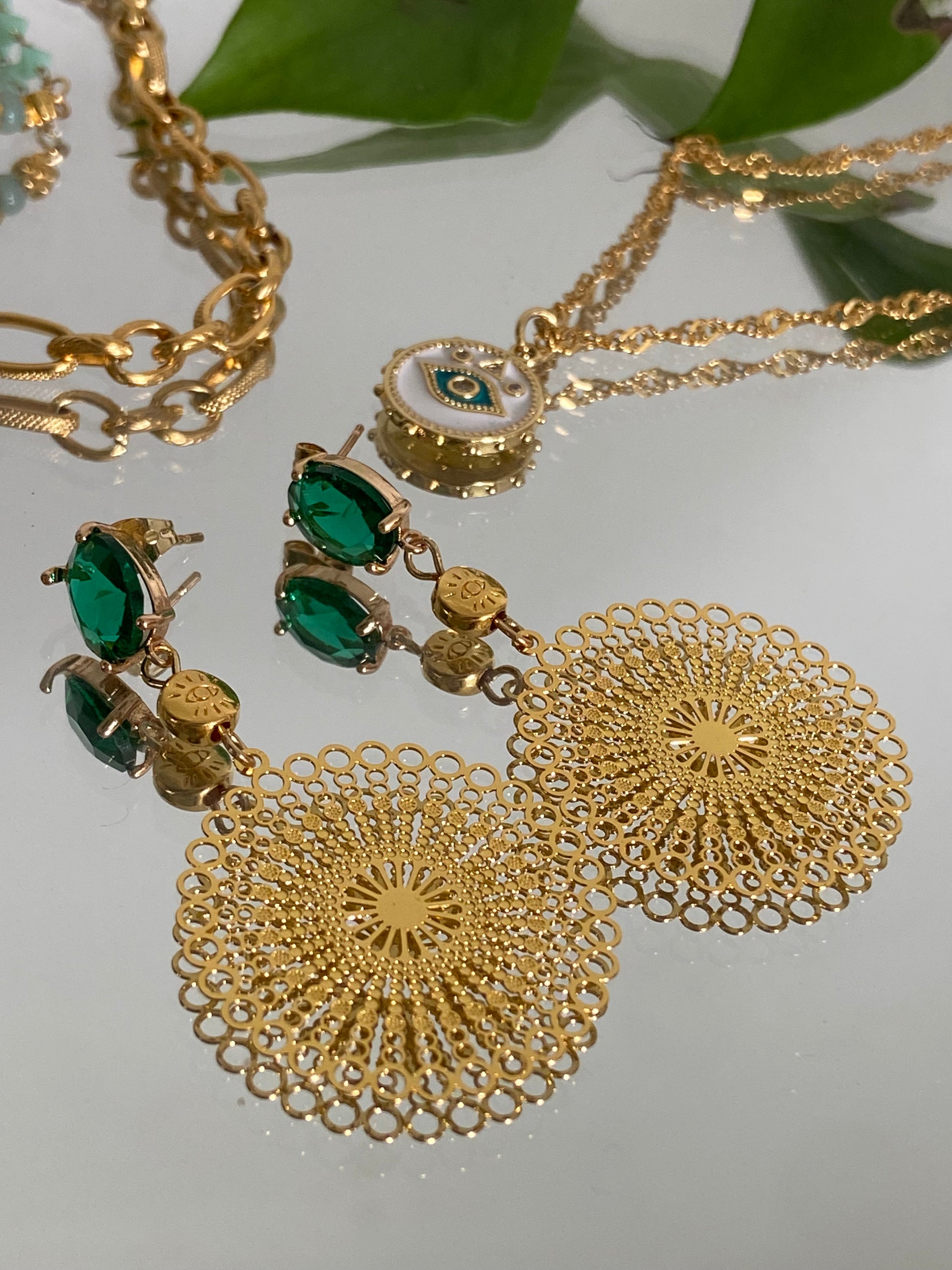Deze handgemaakte oorbel is gemaakt van stainless steel en afgewerkt met een subtiele groene kristalknop. De heldere kleur voegt een frisse touch toe en laat zich moeiteloos combineren met diverse sieraden. Elegant in z’n eenvoud – perfect voor elke dag.
